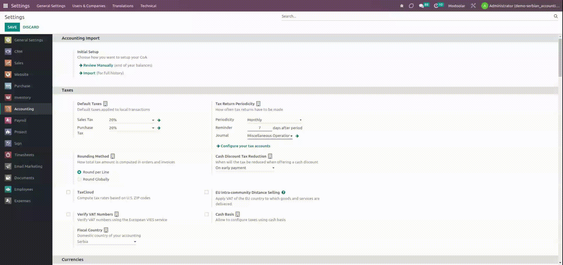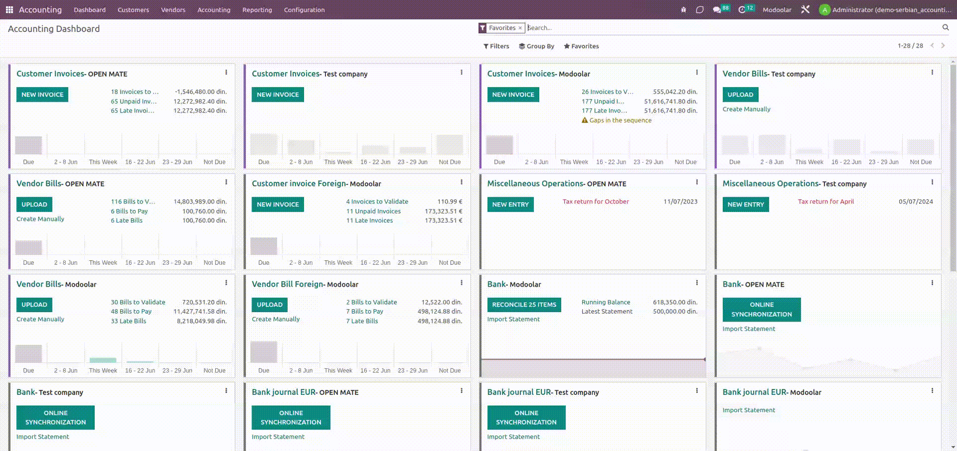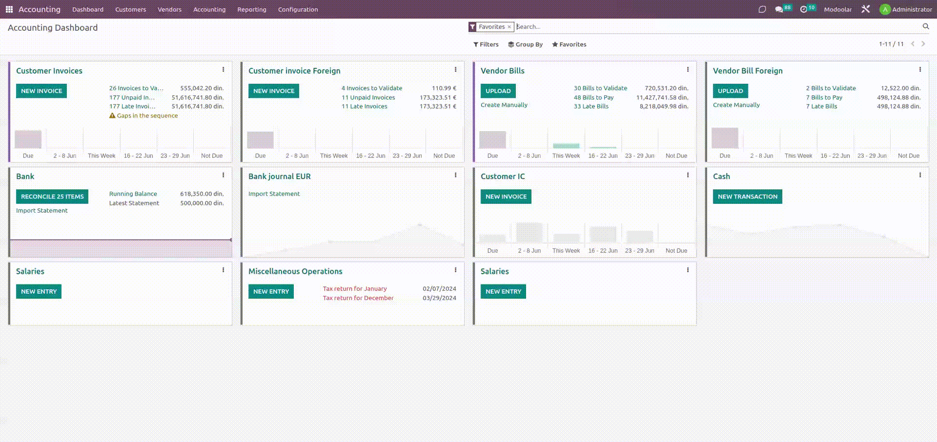 Odoo4Serbia, localization for the Odoo platform provides a comprehensive and adaptable solution for efficient management of accounting and business processes. With localized modules aligned with the legislation of the Republic of Serbia, our application enables users to focus on business rather than paperwork.